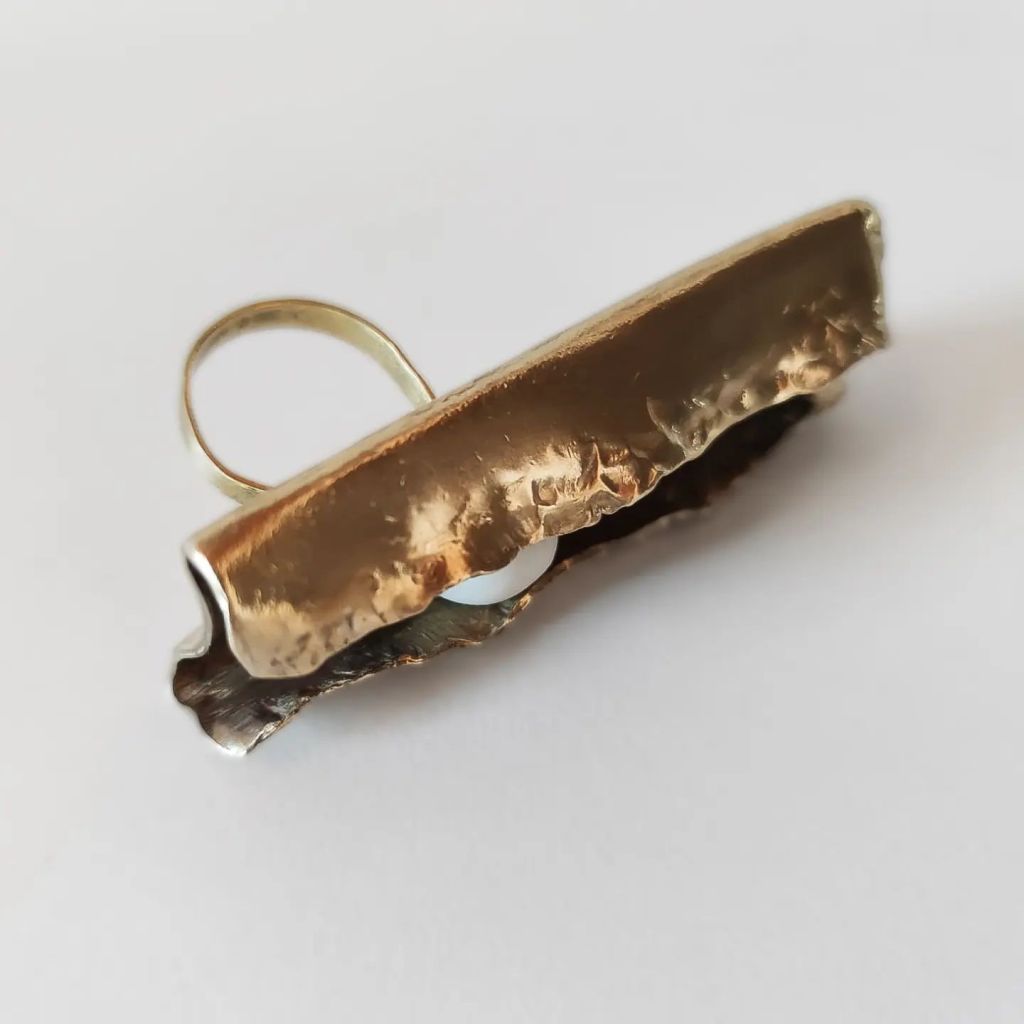 “Plaer” es una obra llevada a cabo por Txell Fagu y yo como proyecto para la asignatura Proyectos de Cerámica Artística del Grado Superior en Cerámica Artística de la Escuela de Arte y Diseño Llotja en colaboración con el Grado Superior de Joyería Artística en Mayo del 2024. Partiendo de los conceptos de «límite», «frontera» y «reja» como tema, decidimos ejecutar una obra que transgreda los límites impuestos socialmente alrededor de la sexualidad femenina. Elaboramos un anillo con semejanza a una vulva, representando el clítoris con una esfera de porcelana. La esfera se mueve (y puede ser movida) libremente dentro de la estructura de latón. Si se presta atención, se puede leer la palabra «Plaer» dentro de la misma.